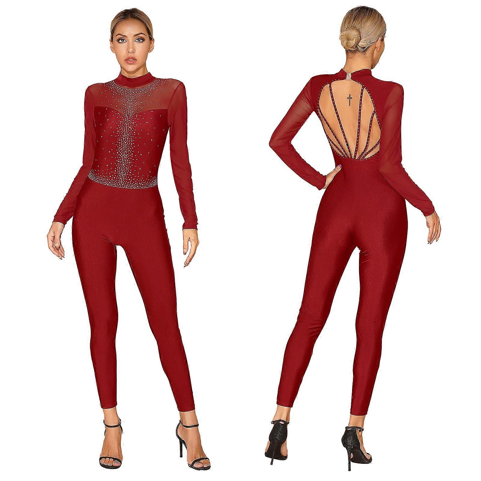 Womens Gymnastics Unitards Dance Jumpsuits Ballet Dancing Adult Ballerina Dancewear Glittery Rhinestone Long Sleeve Bodysuit