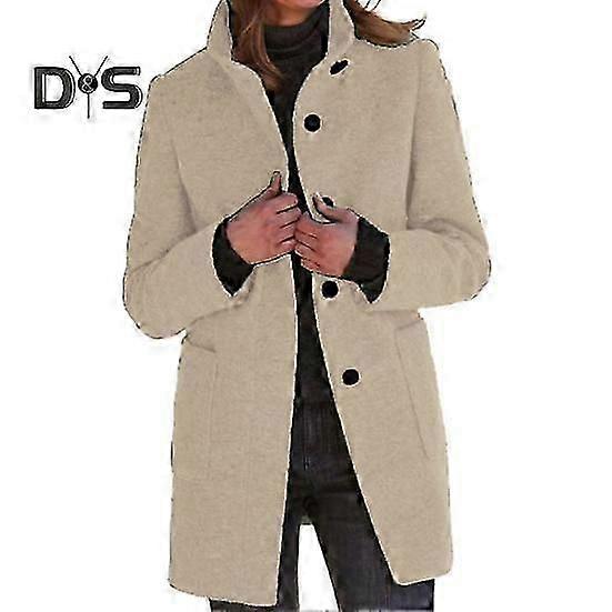 Women Fall Winter Coat Stand Collar Neck Protection Thick Solid Color Warm Windproof Mid Length Single breasted Cardigan Long Sleeve Lady Overcoat