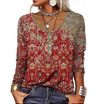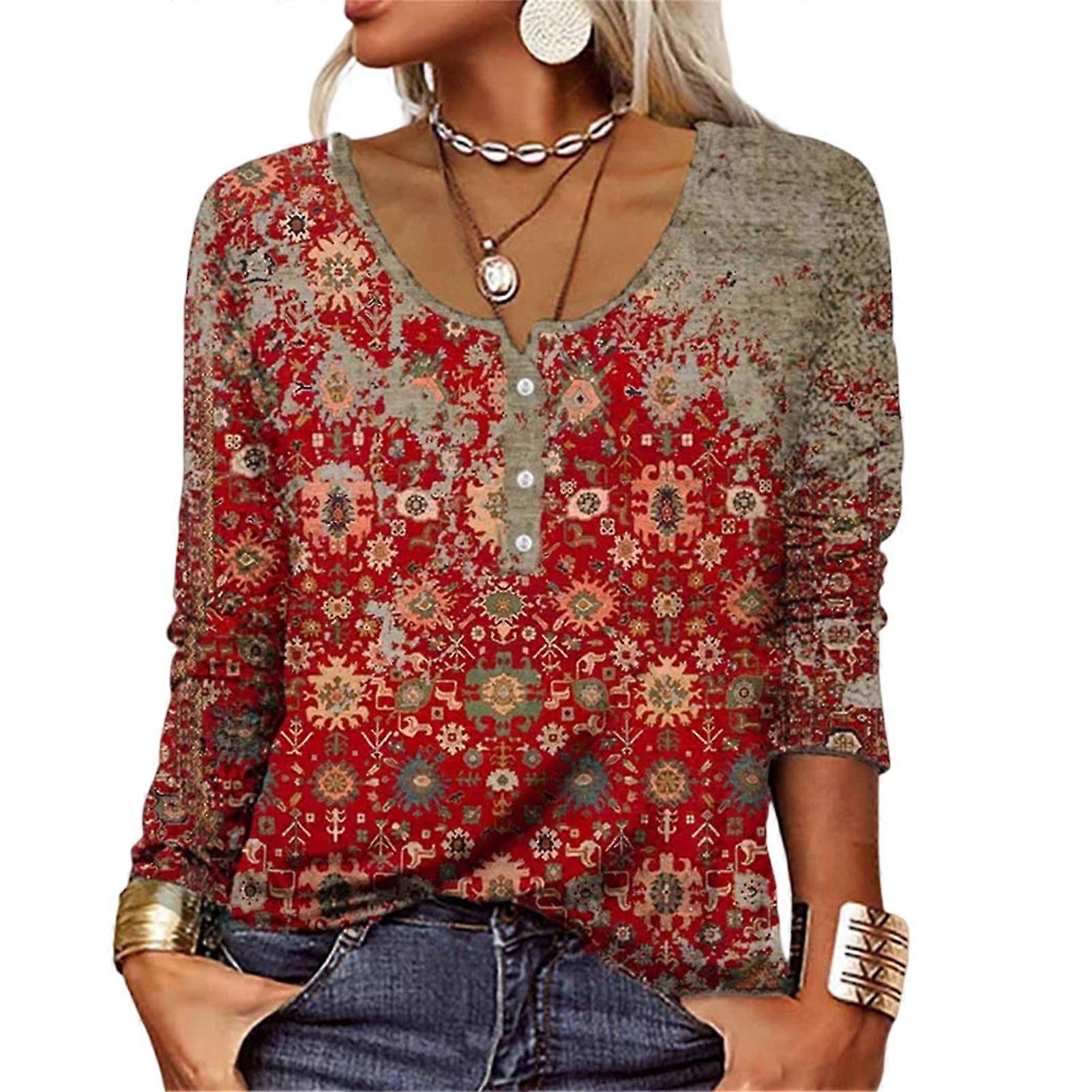 Women\'s Autumn Casual T-shirt Geometric Print U Neck T-shirt For Outdoor Dating Shopping Wear