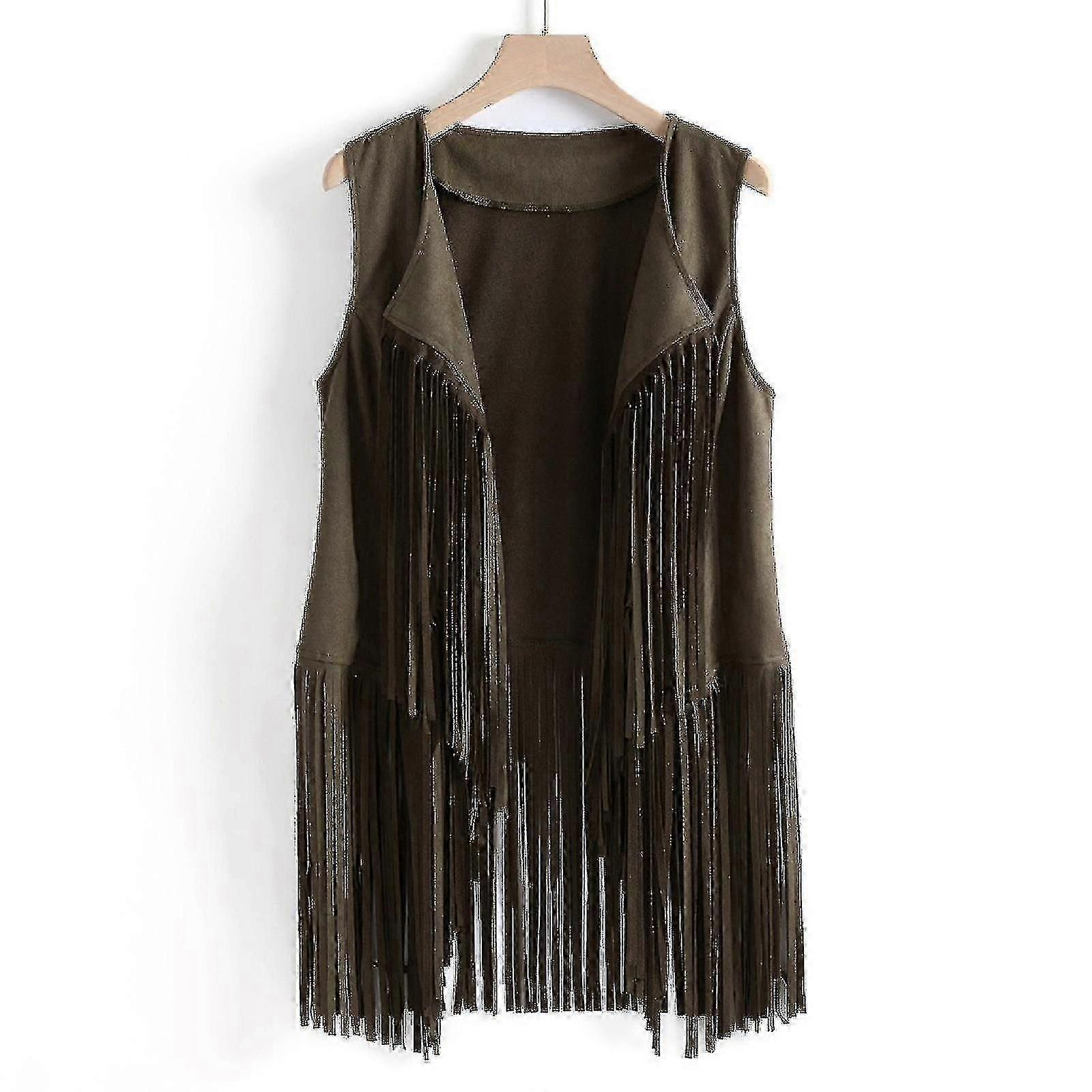 Women Autumn Winter Suede Ethnic Sleeveless Tassels Fringed Vest Cardigana