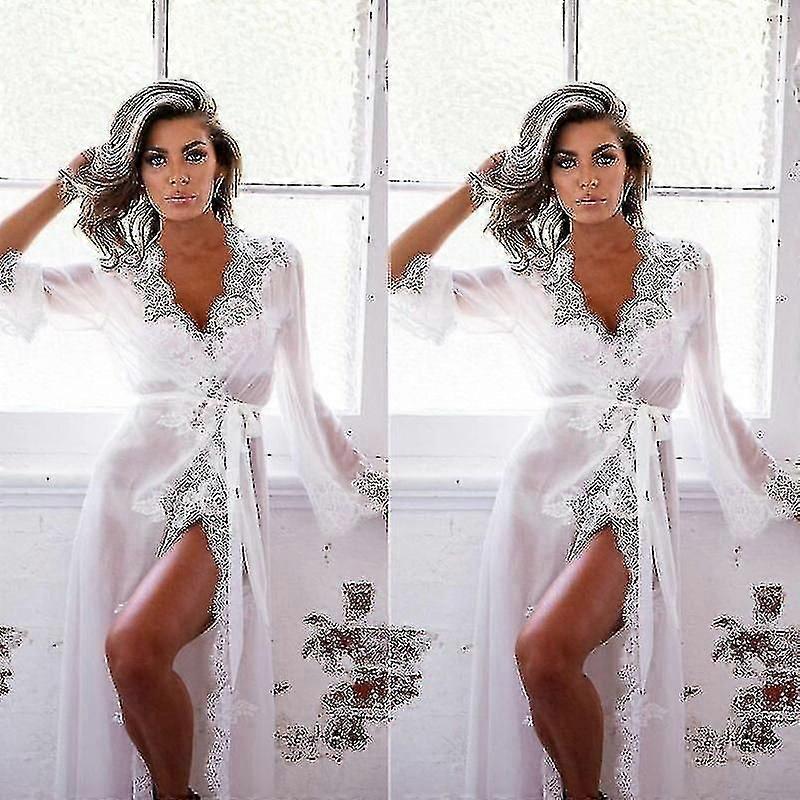 Women Lace See Through Lingerie Dress Long Bath Robe Gown Sleepwear Nightwear Nightgown