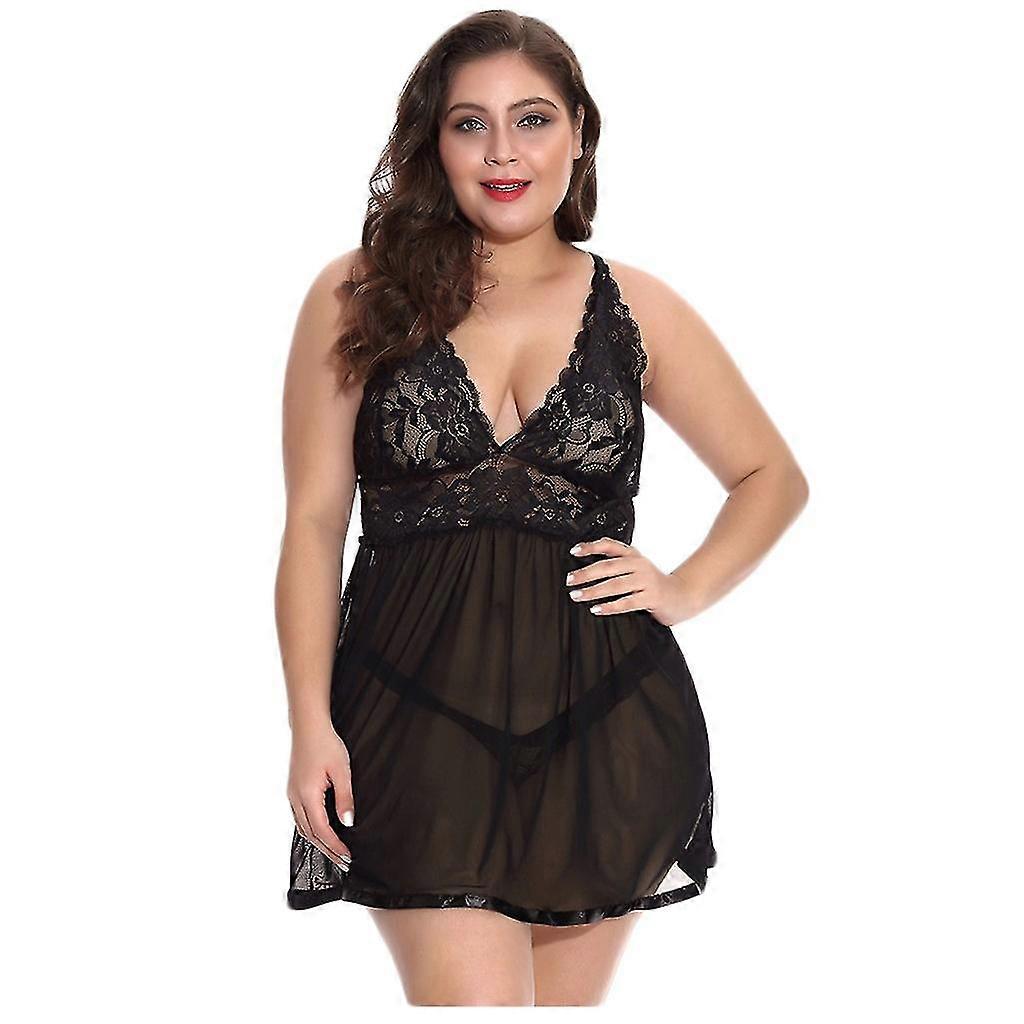 Women Lace Plus Size V-neck Backless Pajamas Sexy Lingerie Sleepwear Set 1xl-4xl