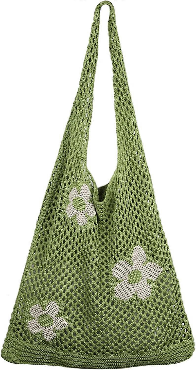 Women Retro Summer Hobo Bag Mesh Hollow Tote Bag Trendy Flower Knitted Shoulder Bags Casual Beach Purse