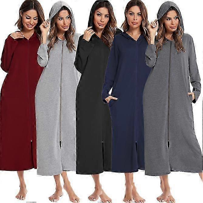 Womens Zip Up Robe Sweatshirt Long Hooded Robe Floor Length Bathrobe with Pockets