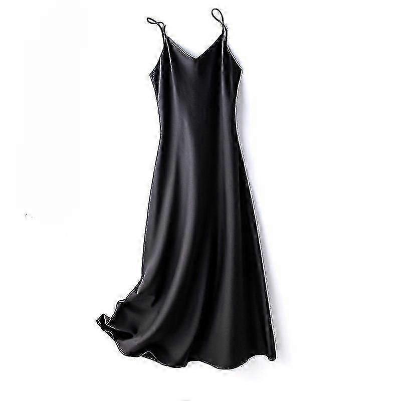 Women Satin Faux Silk Dress Strappy Underdress Nightdress Sexy A-line Long