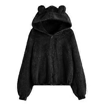 Women Winter Plush Sweatshirt Zipper Lined Hoodie Jacket With Cute Bear Ear Hood