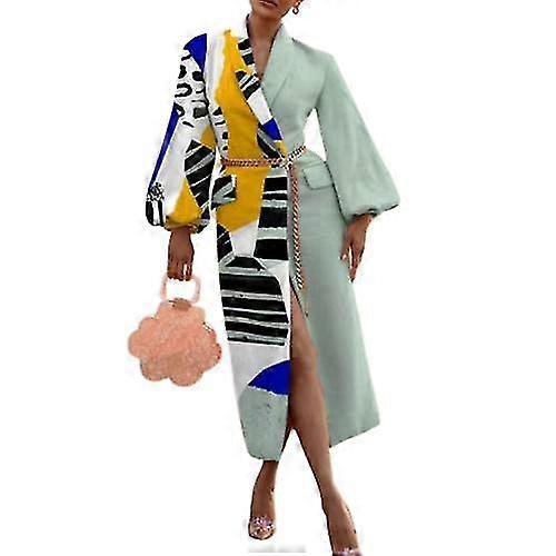 Women Winter Trench Coat Long Puffed Sleeves Lapel Collar Coat