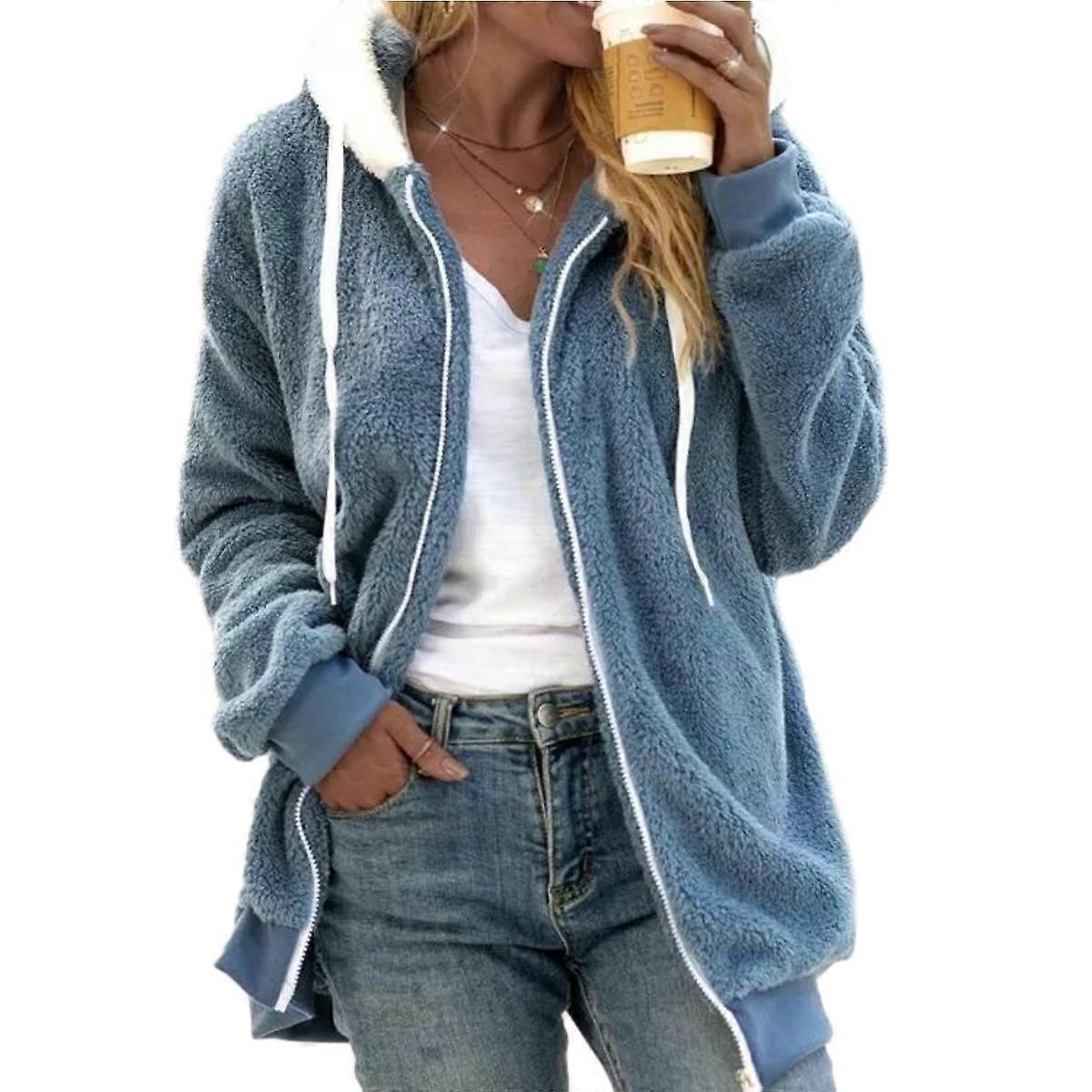 Womens Winter Fuzzy Fleece Jacket Hooded Cardigan Coats Outerwear