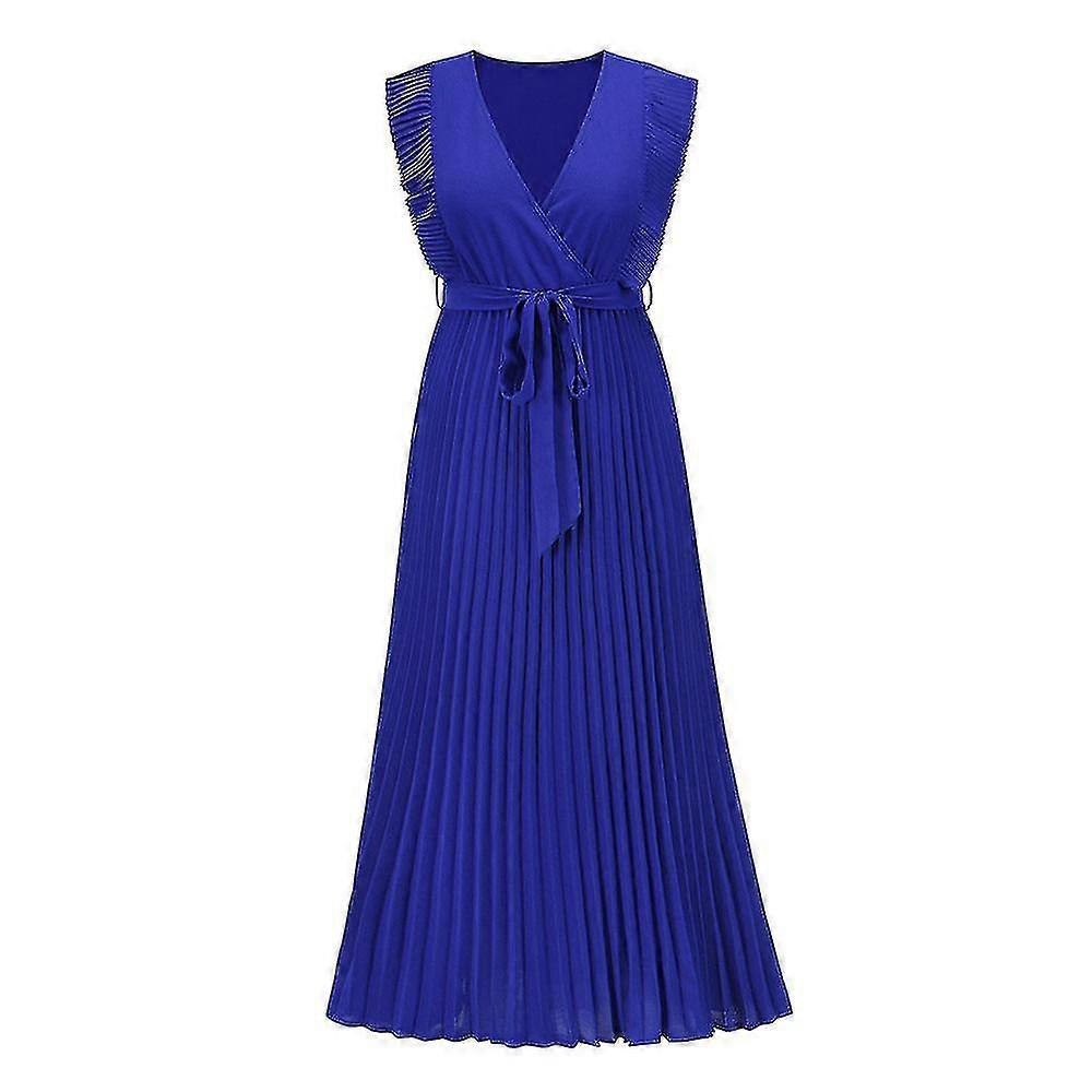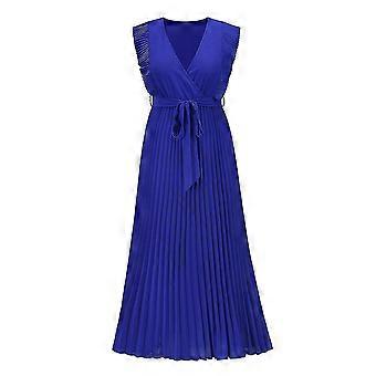 Women Summer Dress Elegant Beach Dress Fashionable Slim Sexy Ruffle Sleeve Chiffon Pleated Skirt Solid Color Dress