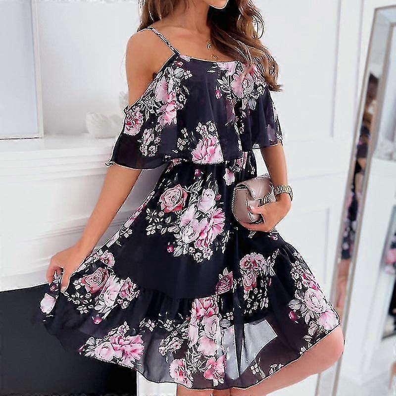 Women Summer Dress 2022 Spring And Summer Chiffon Printed Off-the-shoulder Strap Sexy Dress