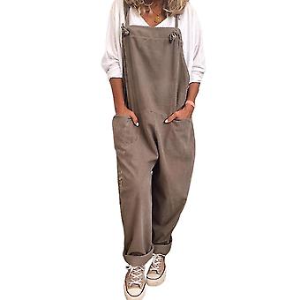 المرأة الصيف وزرة جيوب Dungarees الكتان لعبلة عارضة فضفاضة رومبير بلا أكمام بذلة
