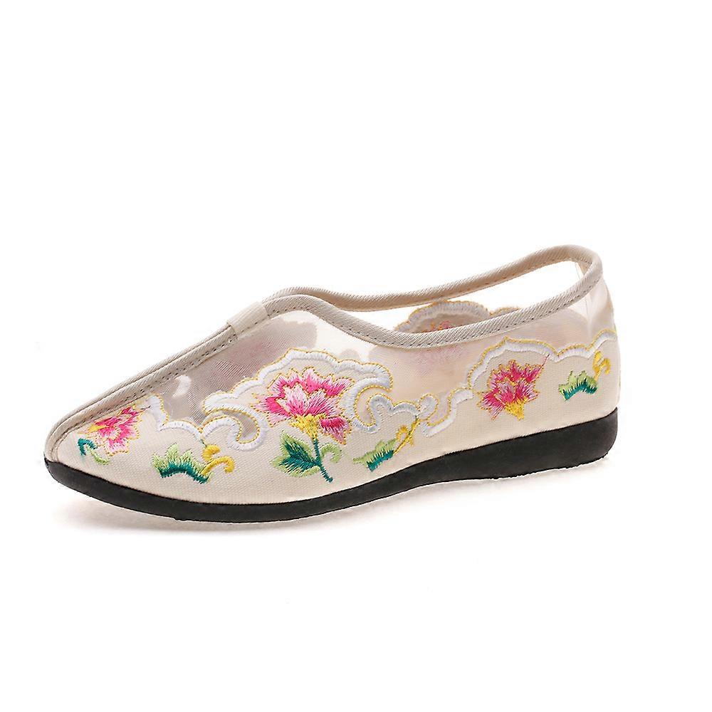 Women's Chinese Ethnic Embroidery Flat Ballet Marry Janes Cheongsam Dancing Shoes Net Yarn Small Crown