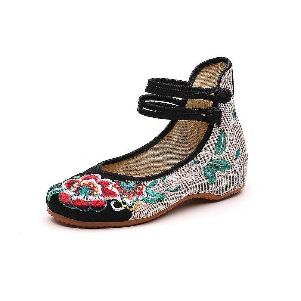 Women's Chinese Retro Ethnic Embroidery Low Heel Flat Elevator Cheongsam Dress Shoes Gao Furong