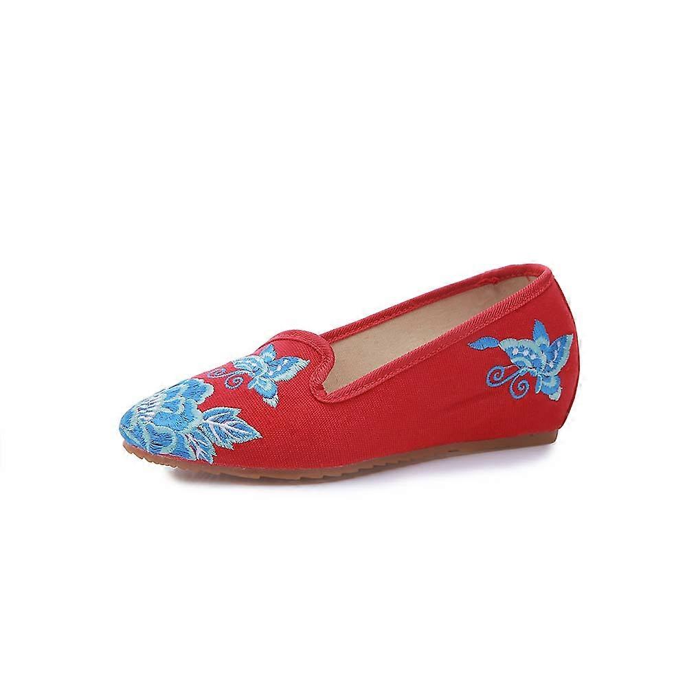 Women's Chinese Retro Ethnic Embroidery Low Heel Flat Elevator Cheongsam Dress Shoes Butterfly Love Flower