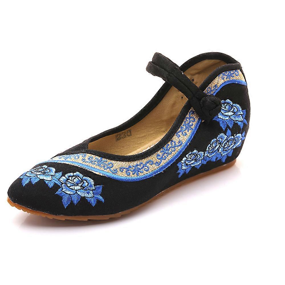 Women's Chinese Retro Ethnic Embroidery Low Heel Flat Elevator Cheongsam Dress Shoes Pointed Roses