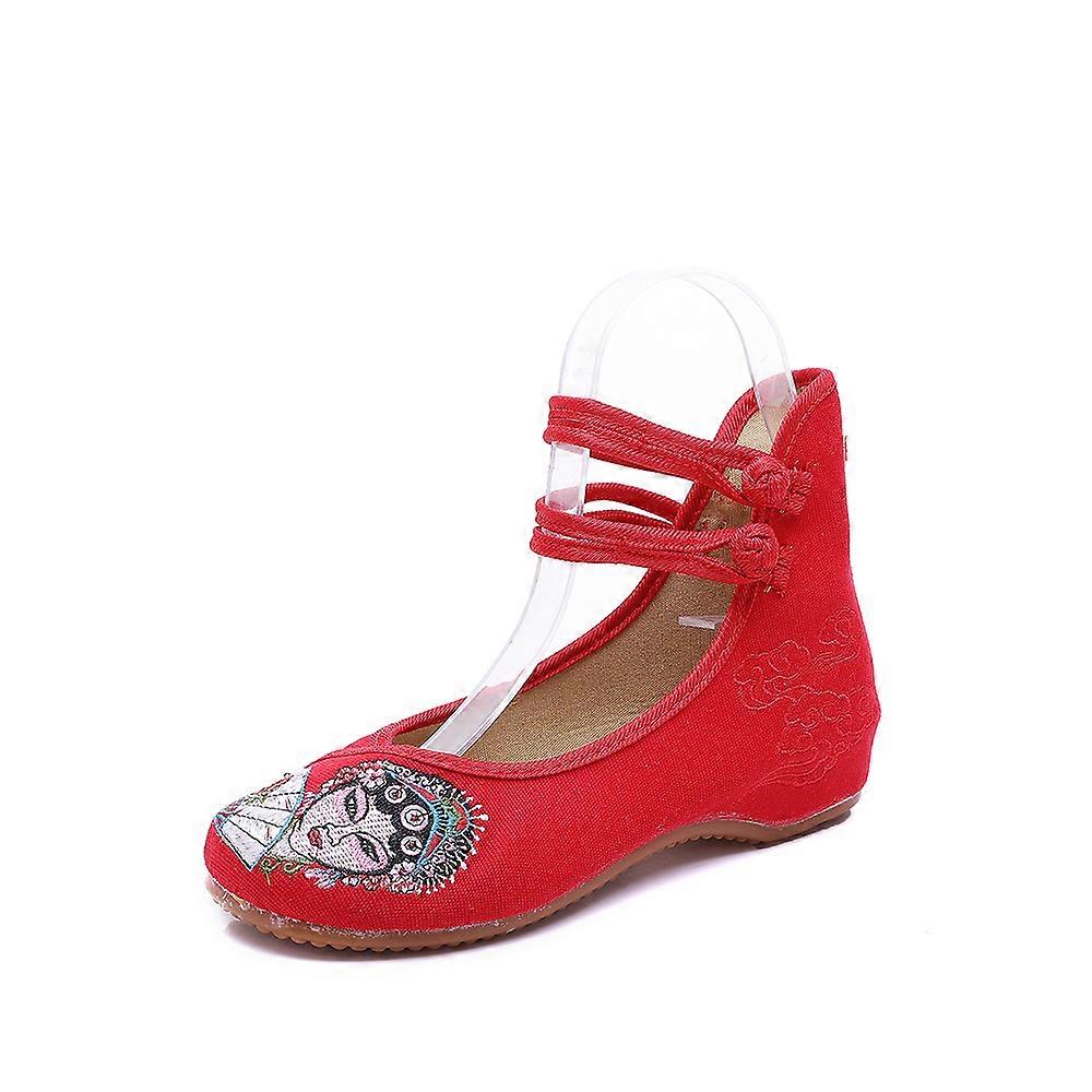 Women's Chinese Retro Ethnic Embroidery Low Heel Flat Elevator Cheongsam Dress Shoes Cutter Madan