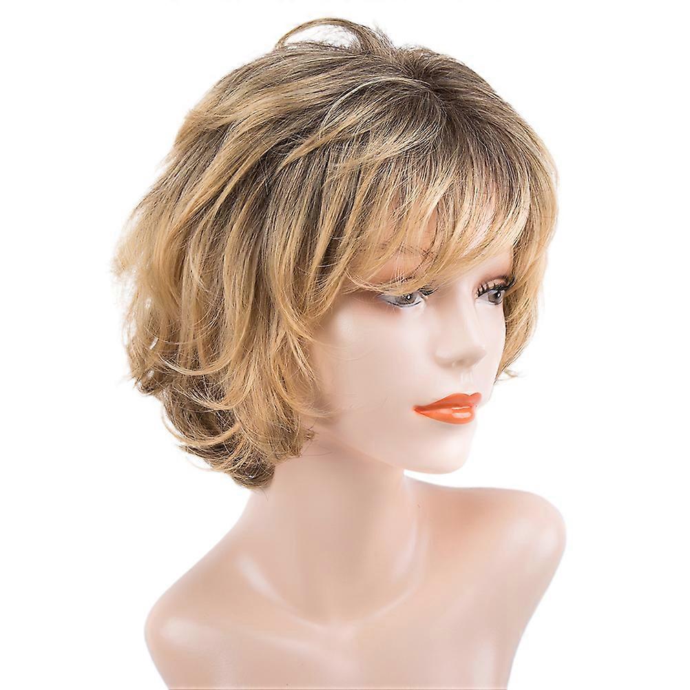 Women Natural Short Curly Wig Realistic Fiber Wig Cover Fashion Hairdressing Tools (Yellow)