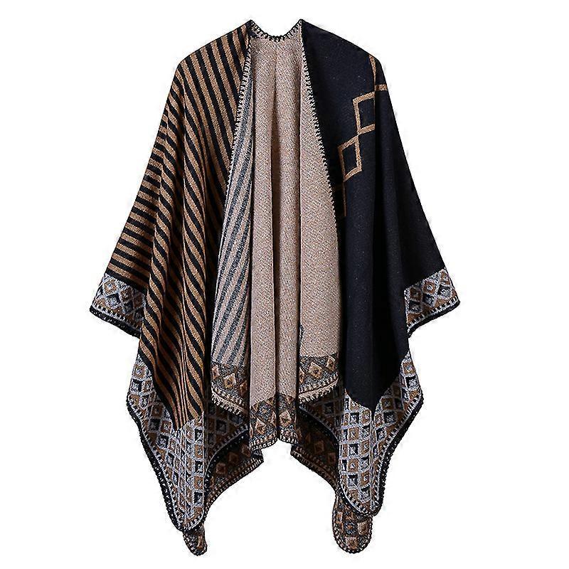 Women Poncho Scarf Cardigan Striped Vintage Warm Cape Shawl Long Scarves Pashmina Outwear