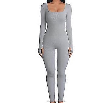 Women Yoga Jumpsuits Workout Ribbed Sexy Long Sleeve Sport Jumpsuits