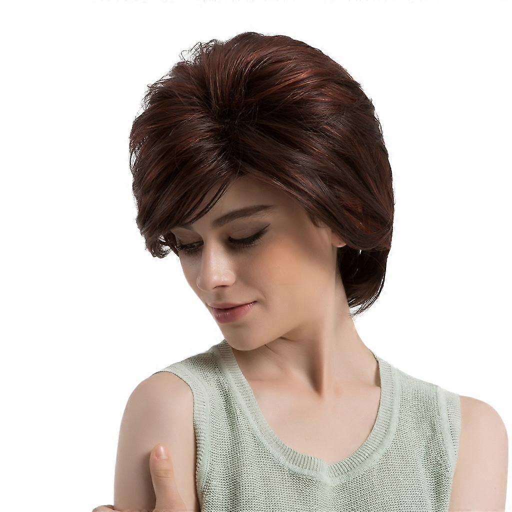 Women Fashion Fluffy Layered Red Brown Short Wig Heat Resistant Synthetic Hair Wig Party Cosplay Daily Wear