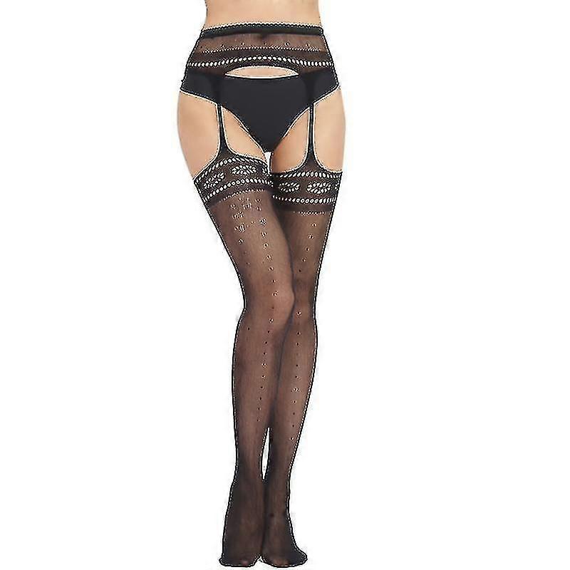 Women Black Lace Jacquard Fishnet Tights Suspender Thigh High Pantyhose High Waist Garter Belt Stockings Lingerie