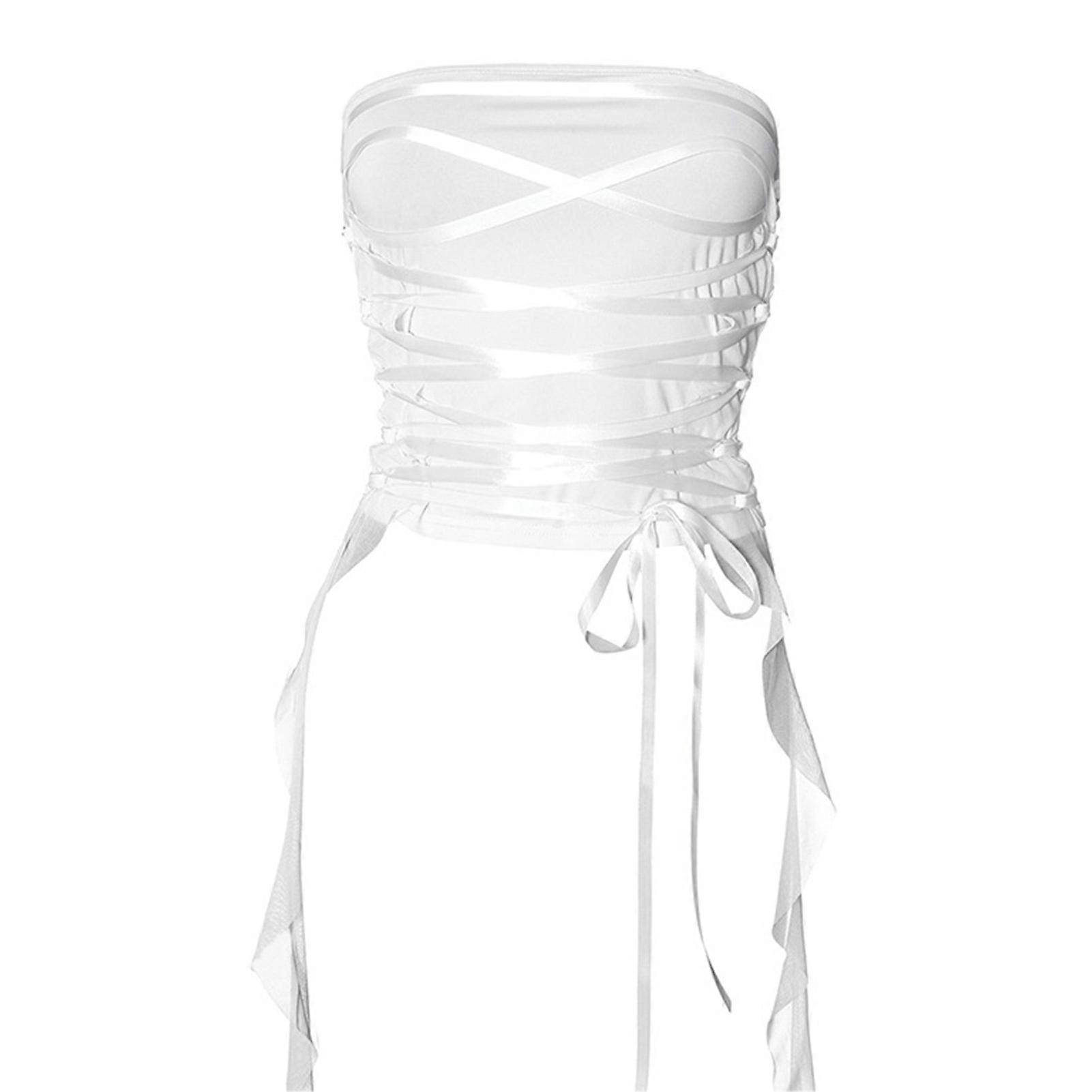 Women Tube Top Summer Lace Up Strapless Pure Color Tube Short Top for Women Female