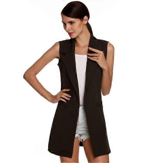 Womens Sleeveless Blazers Jacket Long Suit Vest Open Front Cardigan