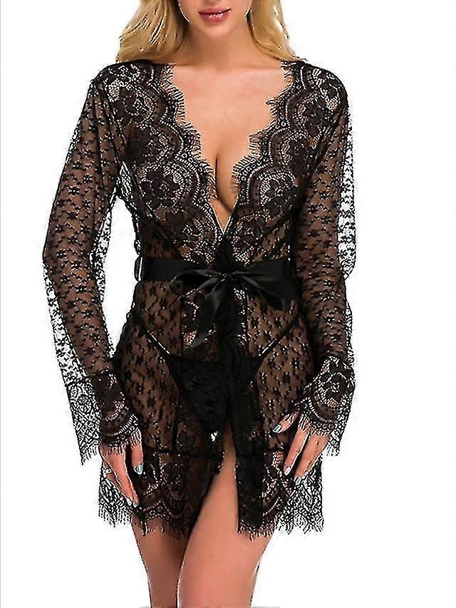 Women's Sexy Lingerie Chemises & Negligees Dress Pure Color Lovers Hot Comfort Home Daily Bed Cotton Breathable Plungi-happygo