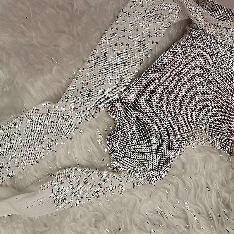 Women Rhinestone Fishnet Mesh Pantyhose Stockings Hollow Shiny Tights Party Club wear
