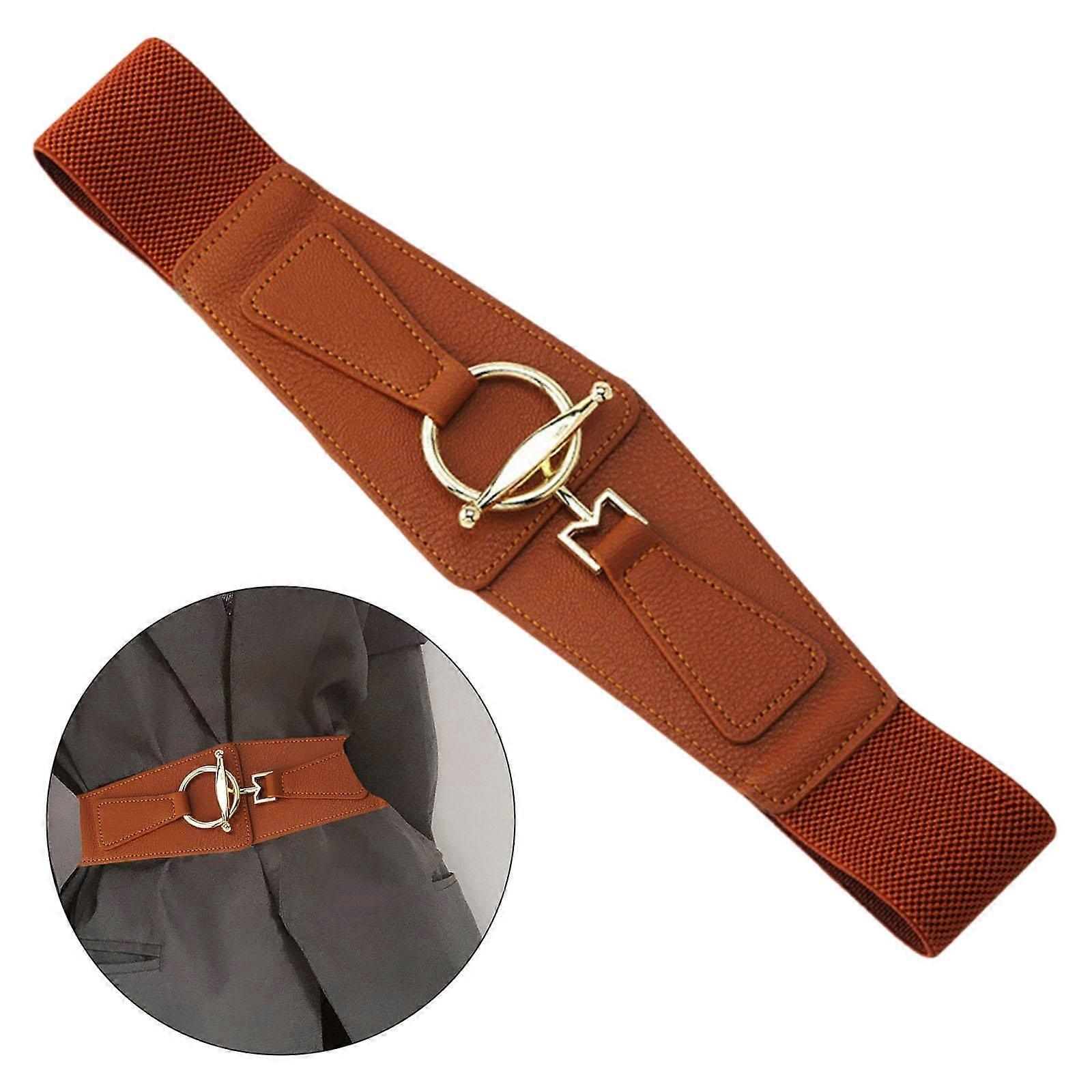 Women's Belt Fashion Vintage Wide Elastic Stretch Waist Belt Buckle Belt - Black