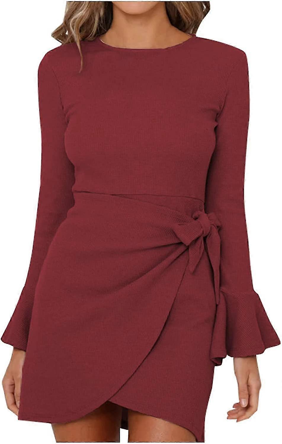 Women's Fall Clothes Long Sleeve Stylish Casual V-neck Slim Dress Formal Wedding Guest Dress S-2xl