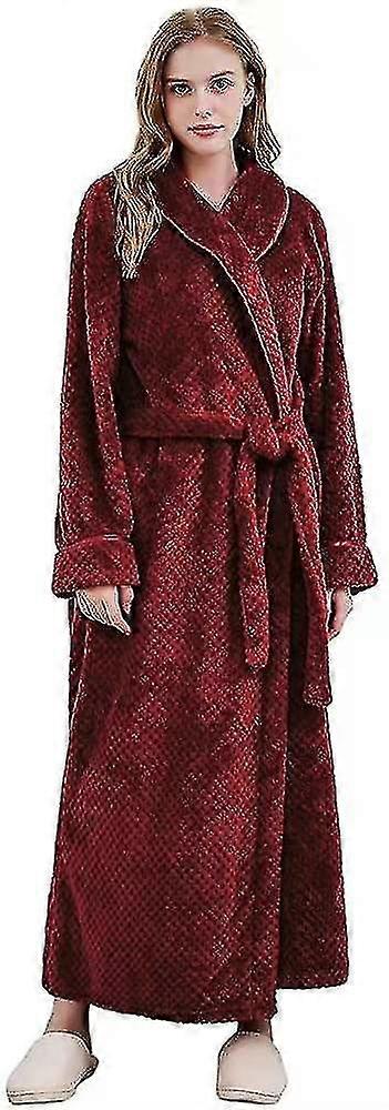Womens Long Robe Soft Warm Fleece Plush Bathrobe Ladies Sleepwear Pajamas Housecoat Nightgown