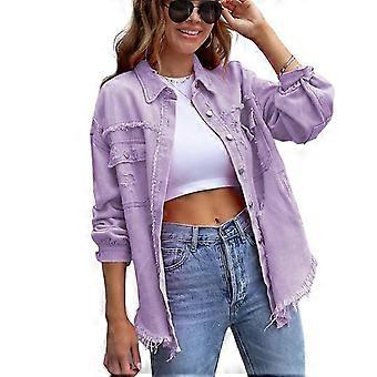 المرأة سترة الدنيم كبيرة الحجم متعثرة ممزق جان سترة