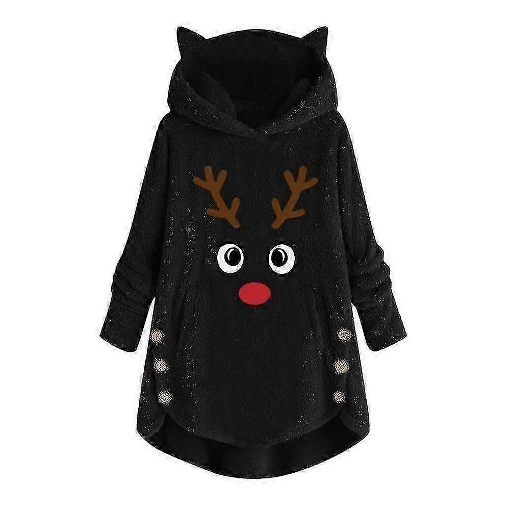 Women Christmas Sweater, Autumn & Winter Printed Cat Ears Hooded Long Sleeve Fiis
