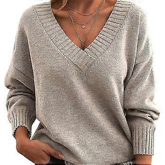 المرأة سترة فضفاضة وعصرية الخامس الرقبة البلوز عارضة تنوعا محبوك سترة مثير