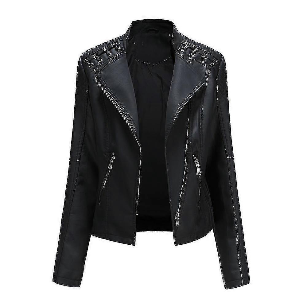 Women's Slim Fit Moto Biker Faux Leather Jacket Zipper Short Coat(black)