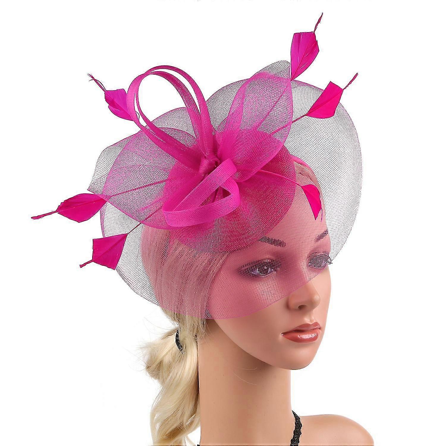 Women Mesh Veil Fascinator Hat with Feather, Flower Headband with Clip, Kentucky Derby Wedding Brida