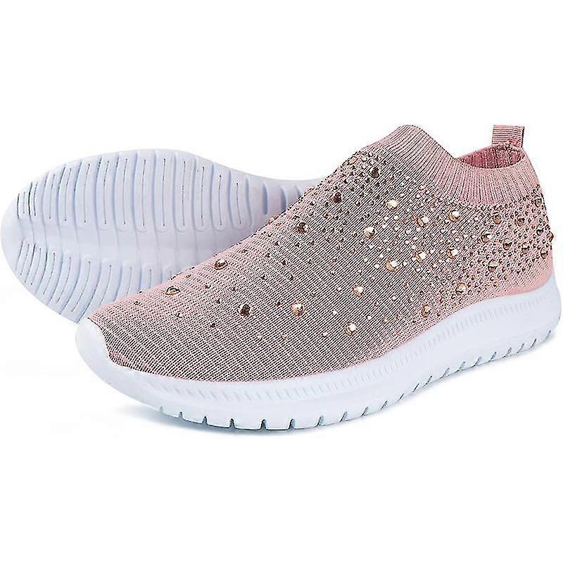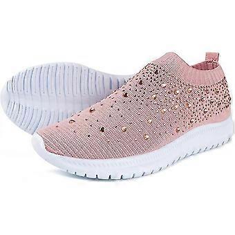 Women's Mesh Walking Shoes, Rhinestone Mesh Slip On Walking Shoes