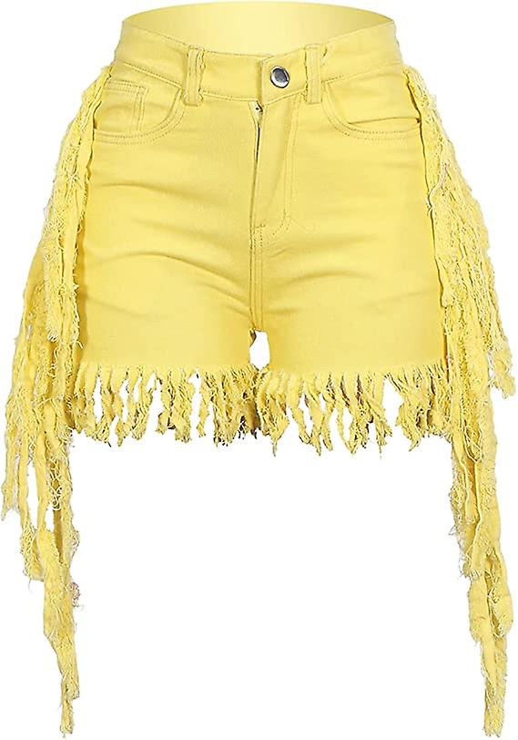 Women's Tassel Sexy Jean Shorts Distressed Washed Hot Pant Jeans Plus Size Frayed Raw Hem Ripped Short Denim Pants