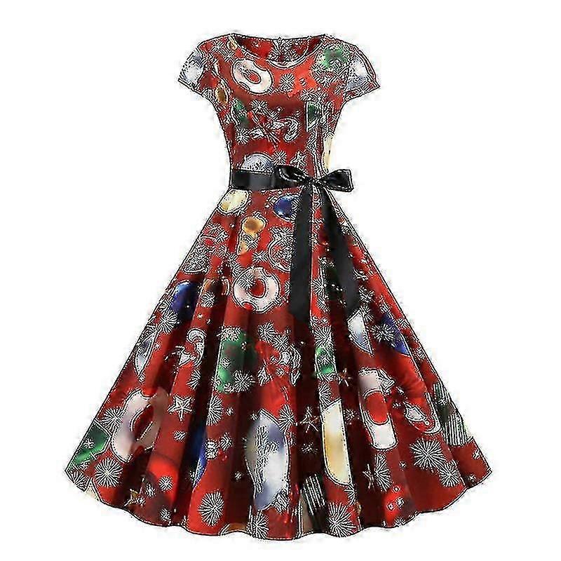 Description:Theme: ChristmasStyle: Rockabilly,Retro,Vintage,50s,60s,HepburnFeature: Short Sleeve,Skater,Swing,A-Line,FlaredMaterial: PolyesterPackage Included: 1 x Women 39;s Dress