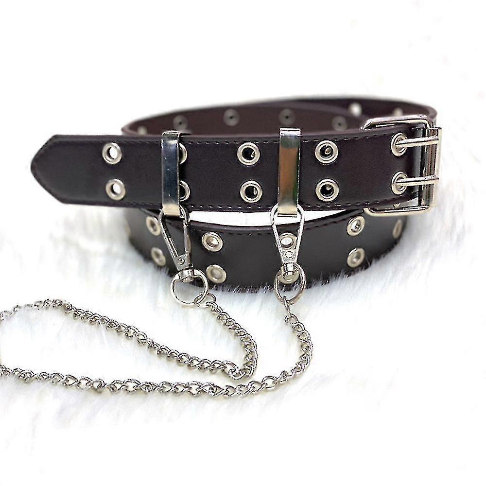 Women Punk Pu Leather Belt Double Grommet Adjustable Waist Belt Jean Belt