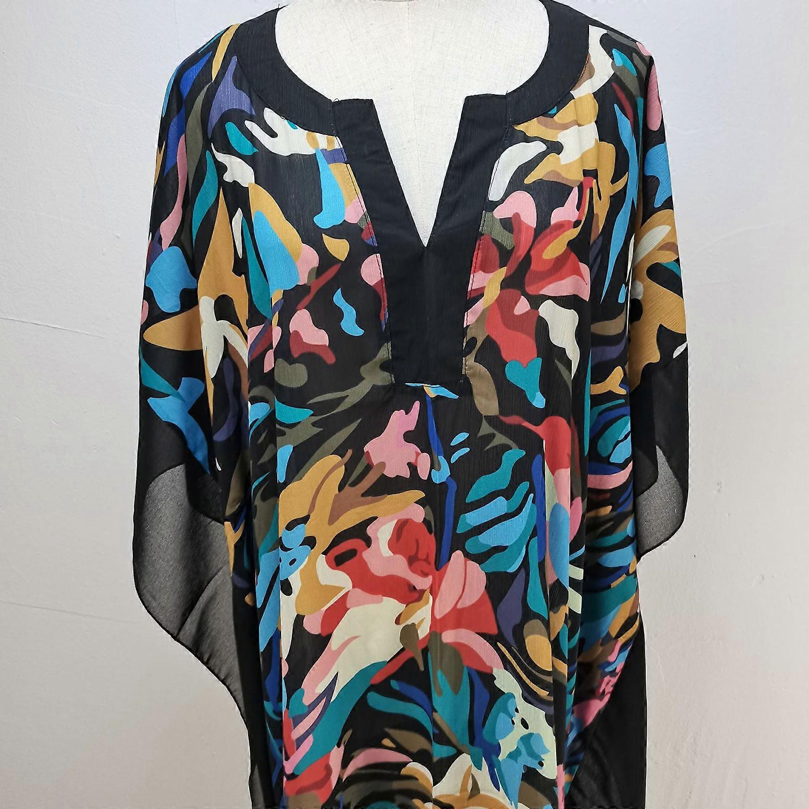 Women Loose Print Beach Kaftan Dress Over Sized Short Sleeve Bathing Suit Cover Ups Plus Size Beachwear for Summer Pool Photo Color Average code