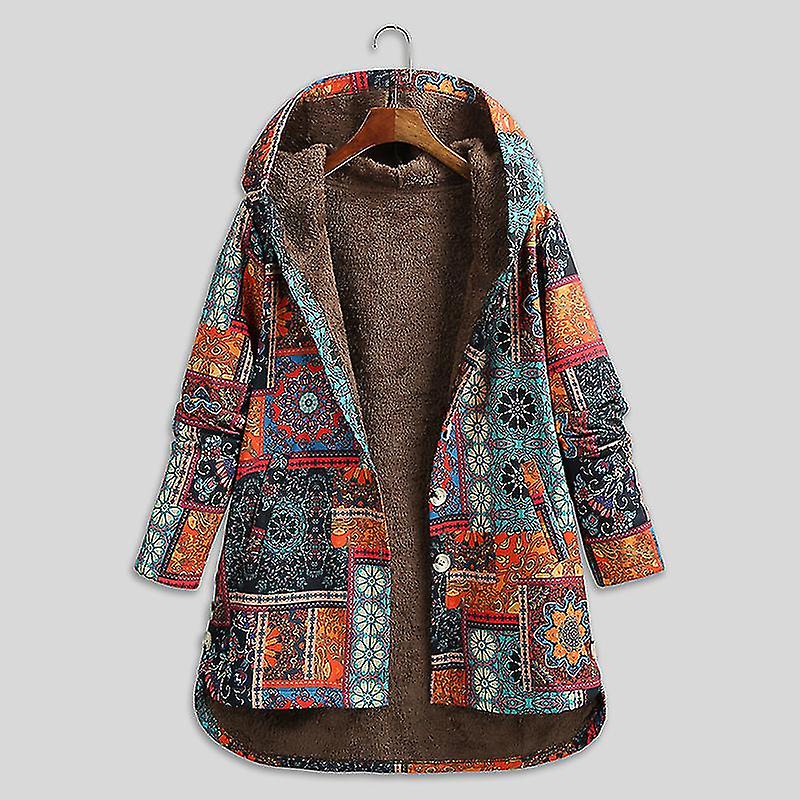Women Loose Hooded Coat Fleece Lining Buttoned Plus Size Winter Warm Long Coat Outwear