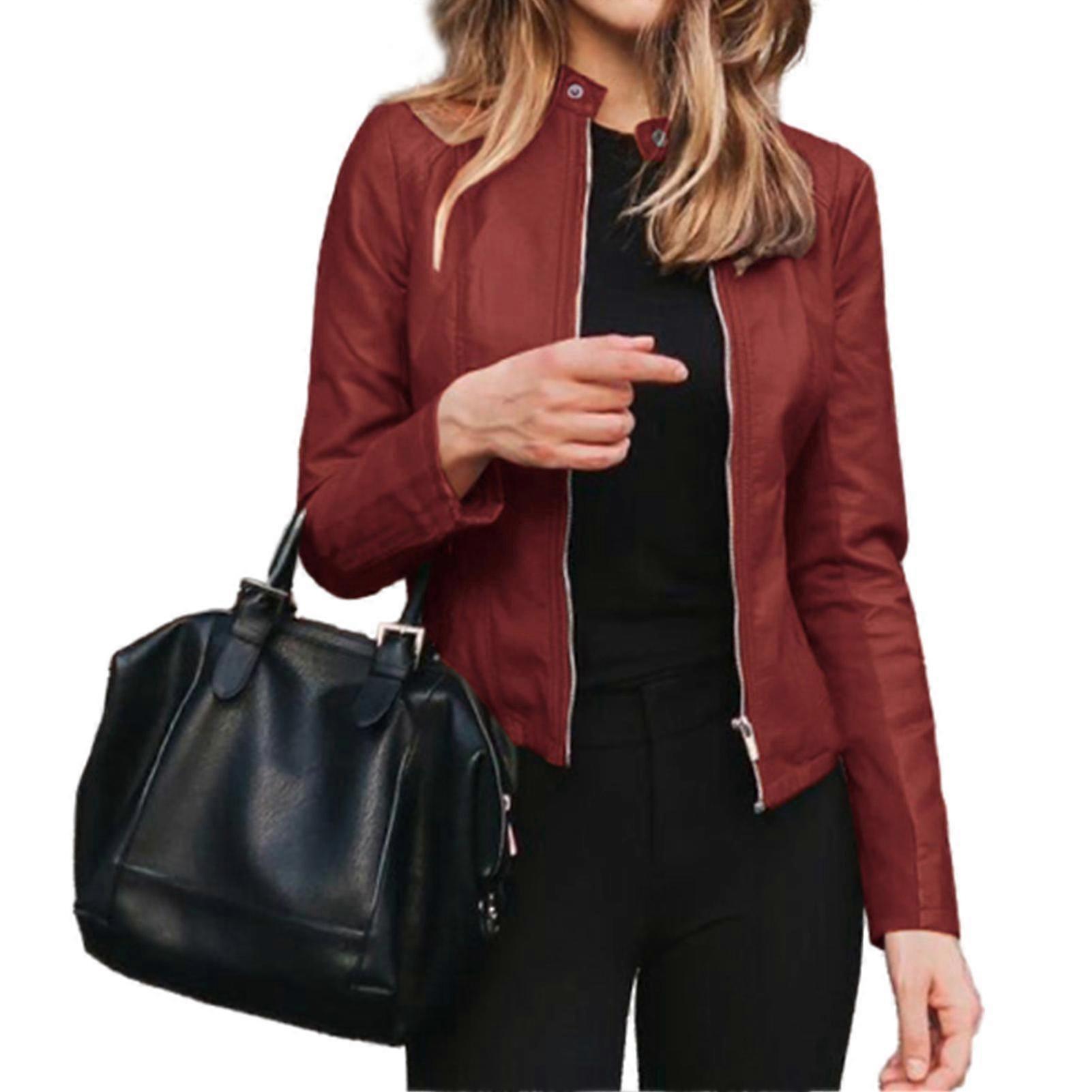 Women\'s Faux Leather Short Jackets Zip Up Motorcycle Short Pu Jackets For Lover Girlfriend Wife Gift
