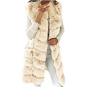 Women's Faux Fur Long Vest Jacket Sleeveless Plush Gilet Coats Open Front Winter Warm Fuzzy Waistcoat Outerwear