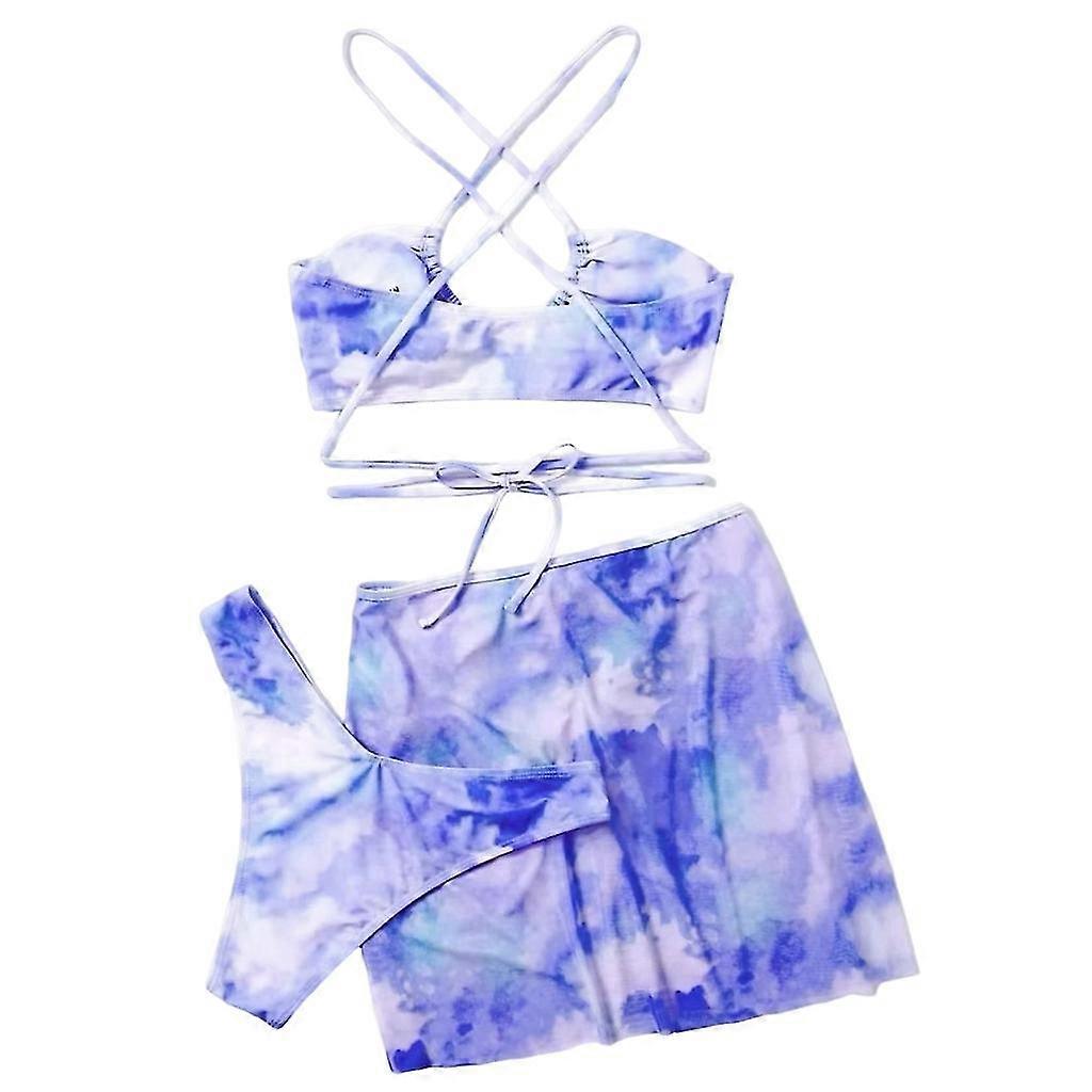Women Criss Cross Bathing Suit 3 Piece Swimsuit Ladies Tie Dye Bikinis Beachwear