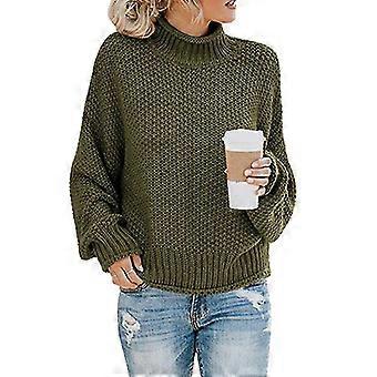 Womens Knit Cable Sweater Long Sleeve Jumper High Neck Tops Pullover