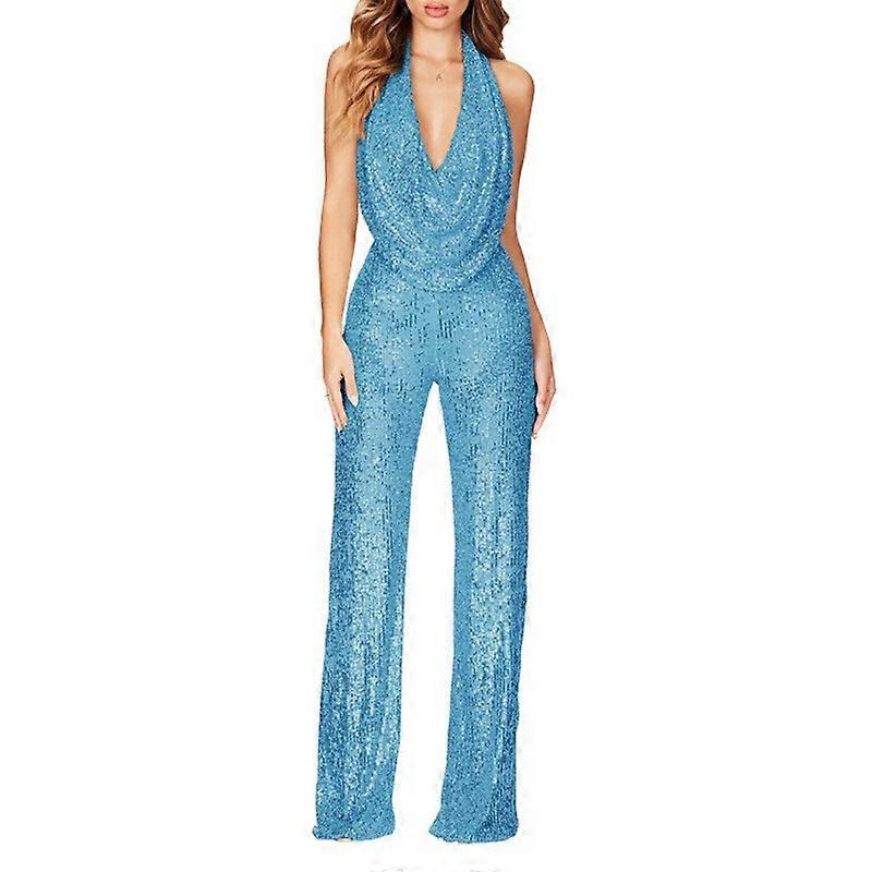 Women's Sexy Halter Cowl Neck Sparkly Jumpsuits,Sleeveless Elegant Sequins
