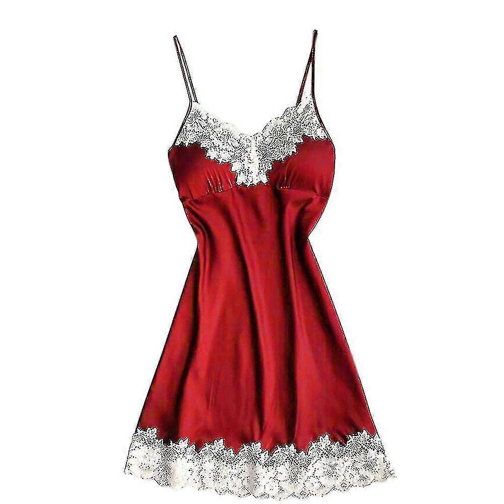 Women Sexy Satin Nightdress Lingerie Babydoll Lace Strappy A-line Sleepwear Underwear