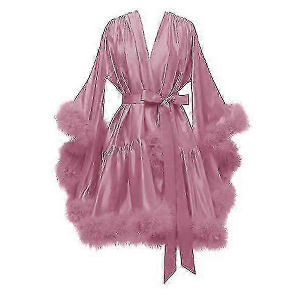 Women's Sexy Feather Robe, Short Chiffon Illusion Sleepwear Nightgown